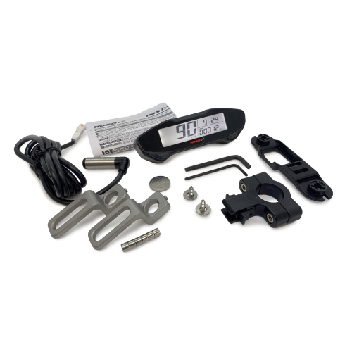 Compact, lightweight, multifuncitonal. Serves as a speed indicator, odometer, (operating) hour meter, clock, stopwatch, voltmeter, shows the trip, maintenance mileage and records values such as maximum speed, maximum voltage, and average speed. Equipped with indicator lights for engine oil, low fuel level, water temperature, high beam, indicators, and engine light, the 70g light DB EX-03 speedometer impresses across the board with a size of only 120mm x 38.8mm x 34.2mm.